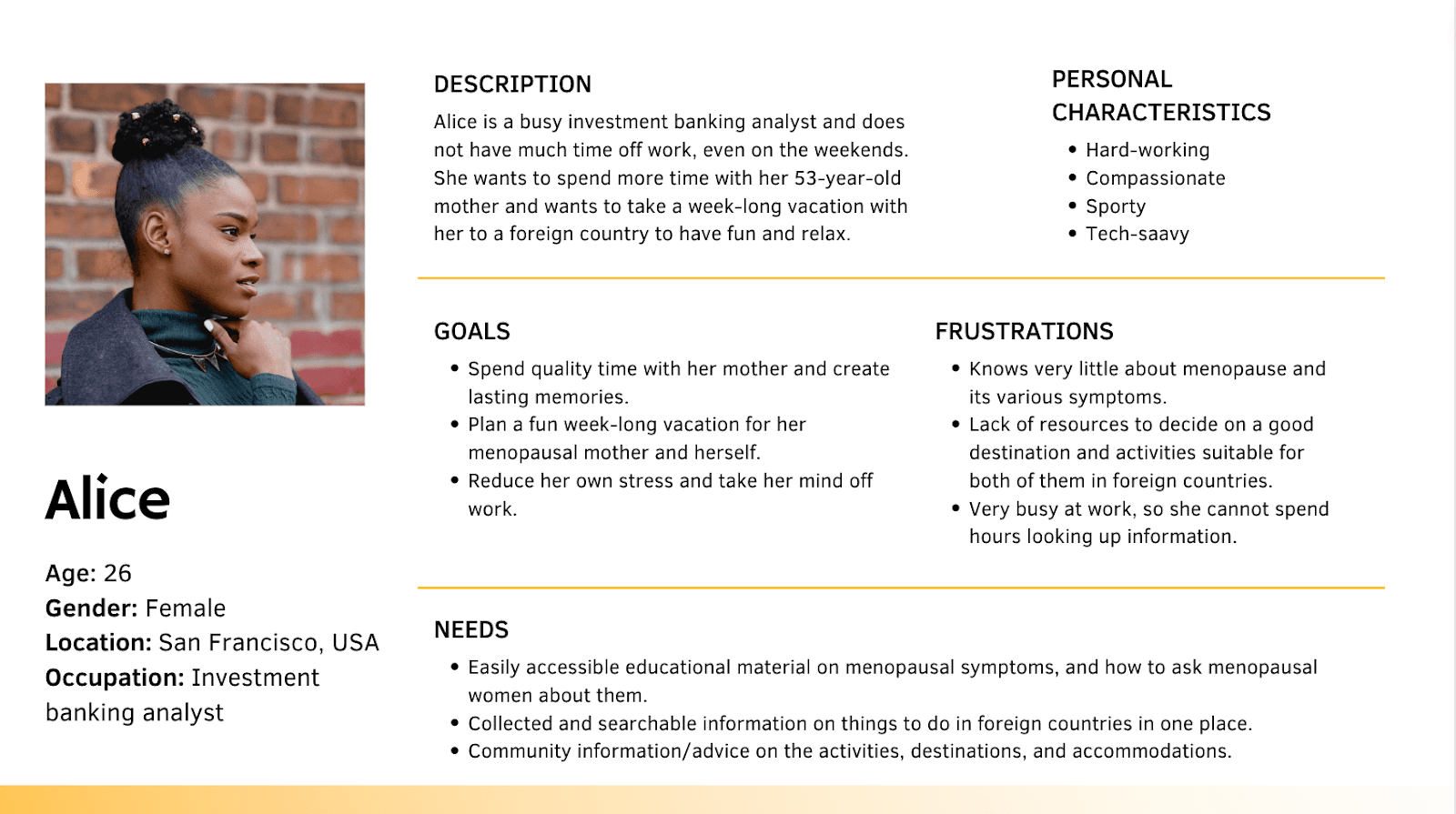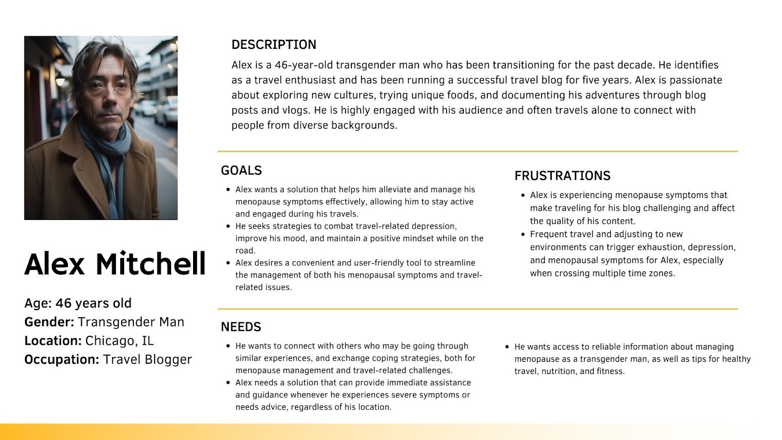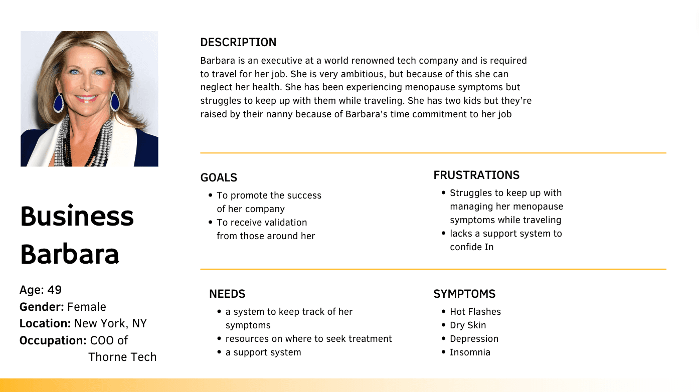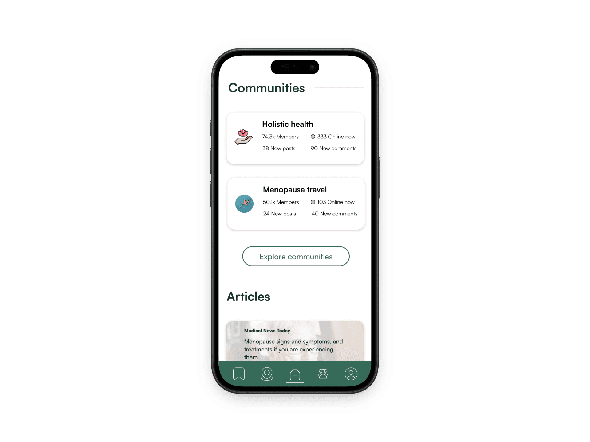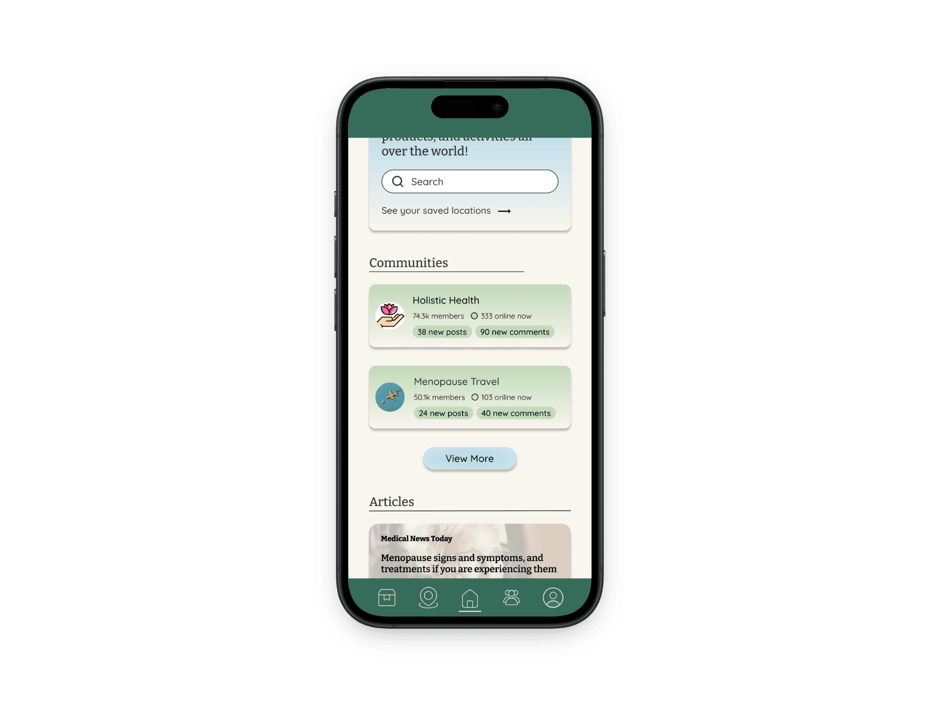 Based on our initial user interviews, many women seek community when they are going through menopause because it is a very stigmatized subject. Therefore, we wanted to create a safe space for menopausal people to share their experiences and connect with each other openly.